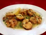 Sauteed in a fresh garlic, lemon, butter & white wine sauce over capellini.